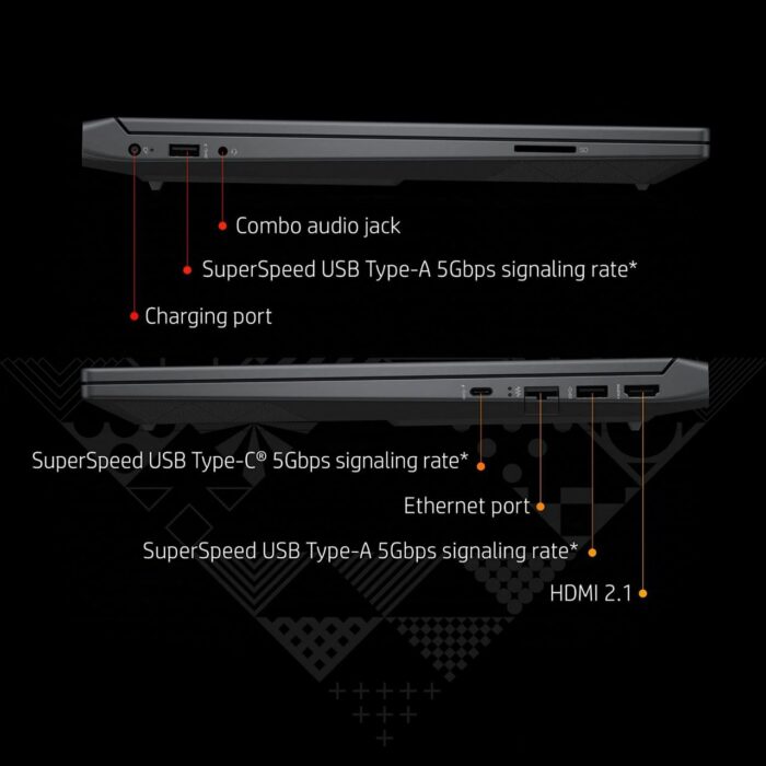 HP در بخش پورتها کمکاری نکرده است. Victus 15 از مجموعهای کامل از پورتهای ورودی و خروجی بهره میبرد که شامل USB 3.2، HDMI 2.1، USB Type-C، درگاه شبکه LAN، و جک 3.5 میلیمتری هدفون میشود. همچنین این لپتاپ از WiFi 6 و Bluetooth 5.2 پشتیبانی میکند که باعث اتصال سریع و پایدار به شبکههای بیسیم و دستگاههای دیگر میشود.