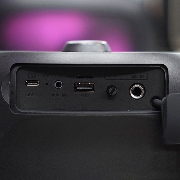 – ورودیهای متعدد: این اسپیکر از ورودیهای BT، AUX، U Disk، و میکروفون پشتیبانی میکند، که امکان استفاده در شرایط مختلف را فراهم میکند.